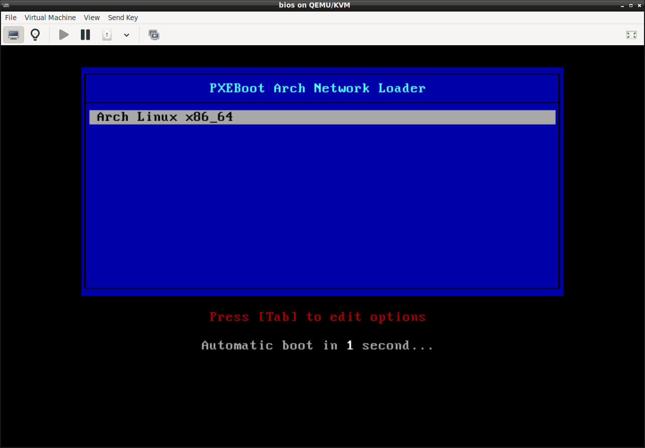--os-variant=archlinux, tak síťová karta vždy používá iPXE boot ze sítě. Pouze Windows virtuální stroje mají defaultní nastavení UEFI boot.